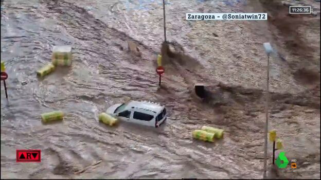 La fuerte tromba de agua que ha sorprendido al Bajo Aragón y a Zaragozaha dejado imágenes terribles, en las que los servicios de emergencias se han tenido que aplicar a fondo. ¿La culpable? Una supercélula, es decir, "una nube my severa que gira sobre sí misma", descargando una gran cantidad de agua en la misma zona.