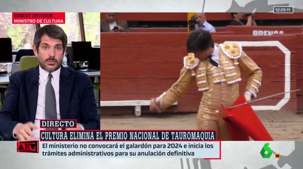 El ministro de Cultura, Ernest Urtasun, ha explicado en Al Rojo Vivo por qué ha decidido prescindir del Premio Nacional de Tauromaquia este año y ha iniciado los trámites para su completa eliminación. Según defiende, "hay que adaptarse a la nueva realidad española" porque, dice, "cada vez hay más gente que está en contra del maltrato animal".