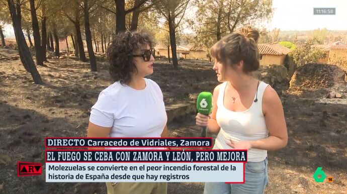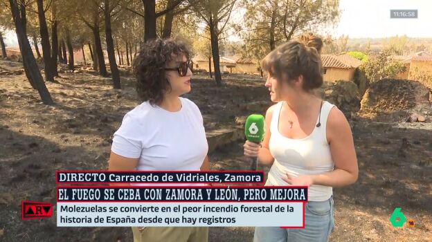 Esta vecina ha denunciado en Al Rojo Vivo que cuando las llamas comenzaron a entrar en el pueblo se encontraban completamente solos. "El primer día, había efectivos esperando a recibir órdenes", ha explicado, señalando que los podía ver puestos en fila mientras los vecinos intentaban hacer frente al fuego.