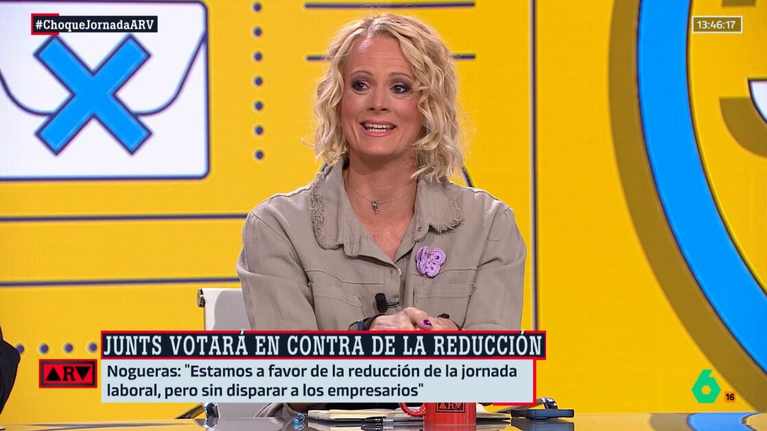 La portavoz de los de Puigdemont en el Congreso, Miriam Nogueras, ha justificado ese voto en contra en 'Al Rojo Vivo': dice que Junts está "a favor" de reducir la jornada, pero rechaza "disparar" a los empresarios, añadiendo que en el Gobierno de España "no tienen ni idea de la realidad en Cataluña".
