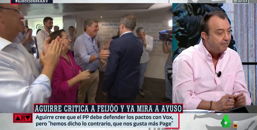 Ante este escenario, el liderazgo de Alberto Núñez Feijóo parece estar en cuestión, pero según Manuel Cobo, exvicealde de Madrid por el PP y colaborador en ARV, y tal como ha afirmado hoy miércoles en el programa, "no conoce a nadie más dentro del PP, salvo Esperanza Aguirre, que haya cuestionado el liderazgo del gallego". Por ello, Cobo ha criticado a Aguirre y además por haber citado y señalado otro nombre para "sustituirle": Isabel Díaz Ayuso. La expresidenta cree que el futuro del PP pasa por Ayuso y lamenta el rechazo de Feijóo a Vox en campaña.