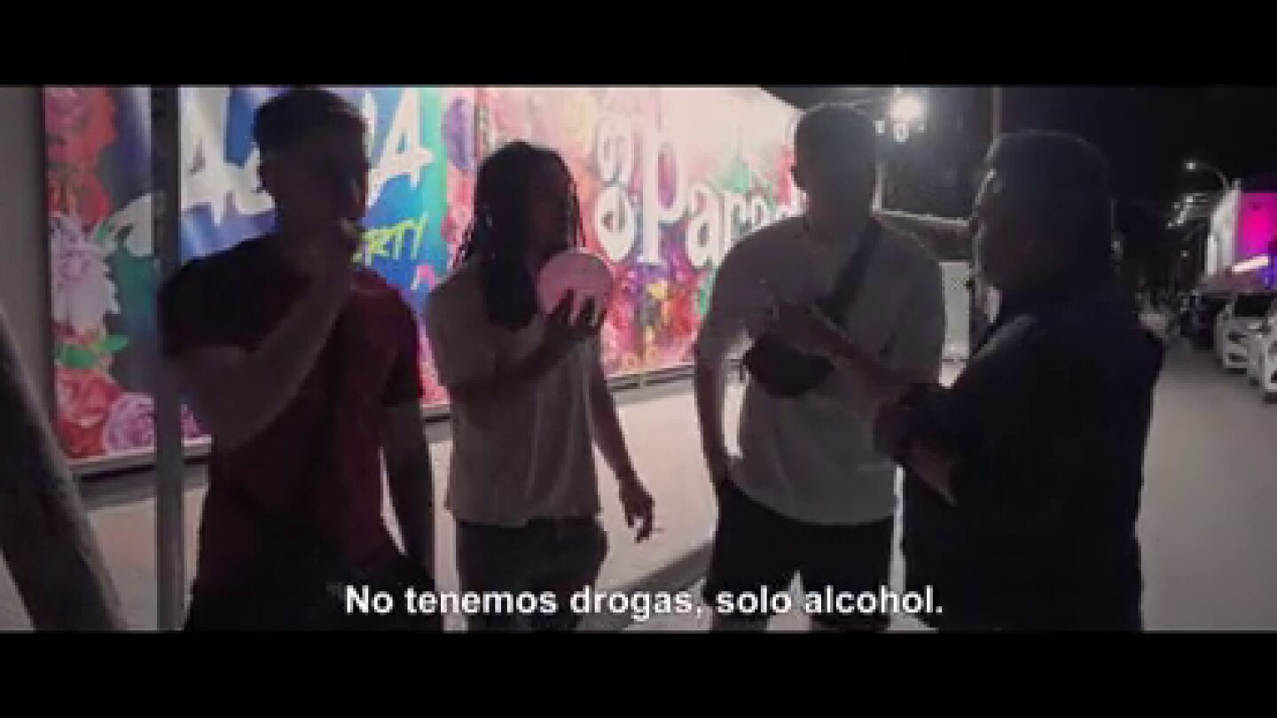 "Aquí hay toda la droga del mundo", le dice un chico. Jalis no pierde la ocasión y le pregunta por el globo. "Eso te lo tomas y es una mierda luego", le confiesa el joven. Preguntado sobre sus efectos, cuenta que no se lo puede ni imaginar. "Lo tomas y te vas para eso, directamente para allá", explica señalando hacia arriba. Tras este encuentro, el reportero encuentra en la puerta a un grupo de jóvenes ingleses consumiendo esta droga. Niegan estar drogándose mientras detrás un amigo inhala el gas y se empieza a reír. El periodista sigue preguntando, pero le dejan con la palabra en la boca mientras se van.