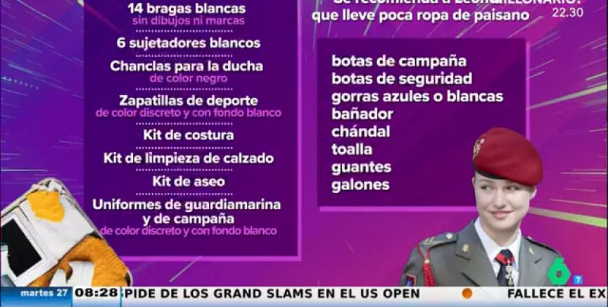 El final del verano está a la vuelta de la esquina, también para la Familia Real. La princesa Leonor ya está a punto de empezar el curso en la Escuela Naval y esto es lo que le indican que debe llevar en su maleta.