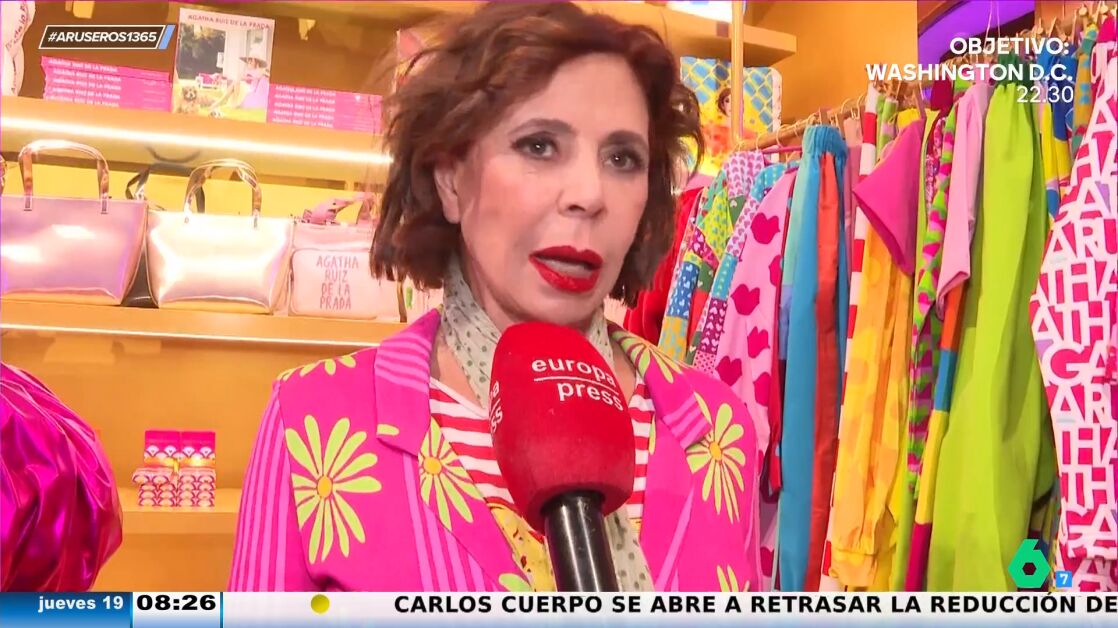 Por otro lado, la reportera le pregunta por las declaraciones de Bárbara Rey en las que deseaba que a su hijo no le dieran la custodia de su nieta. "No conozco al hijo de Bárbara Rey, pero es bastante desastre y yo tampoco le daría la custodia", destaca Ágatha Ruiz de la Prada, que insiste: "Ni le conozco ni le quiero conocer".