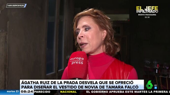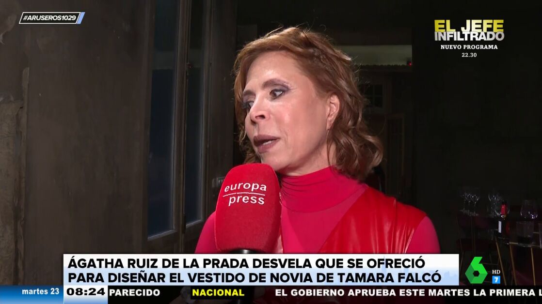 Ágatha Ruiz de la Prada habla de la polémica sobre el vestido de novia de Tamara Falcó después del comunicado de 'Sophie et voilà': "Si crees en un diseñador, le tienes que dar mano libre. Si te empiezas a meter en el traje, queda fatal".