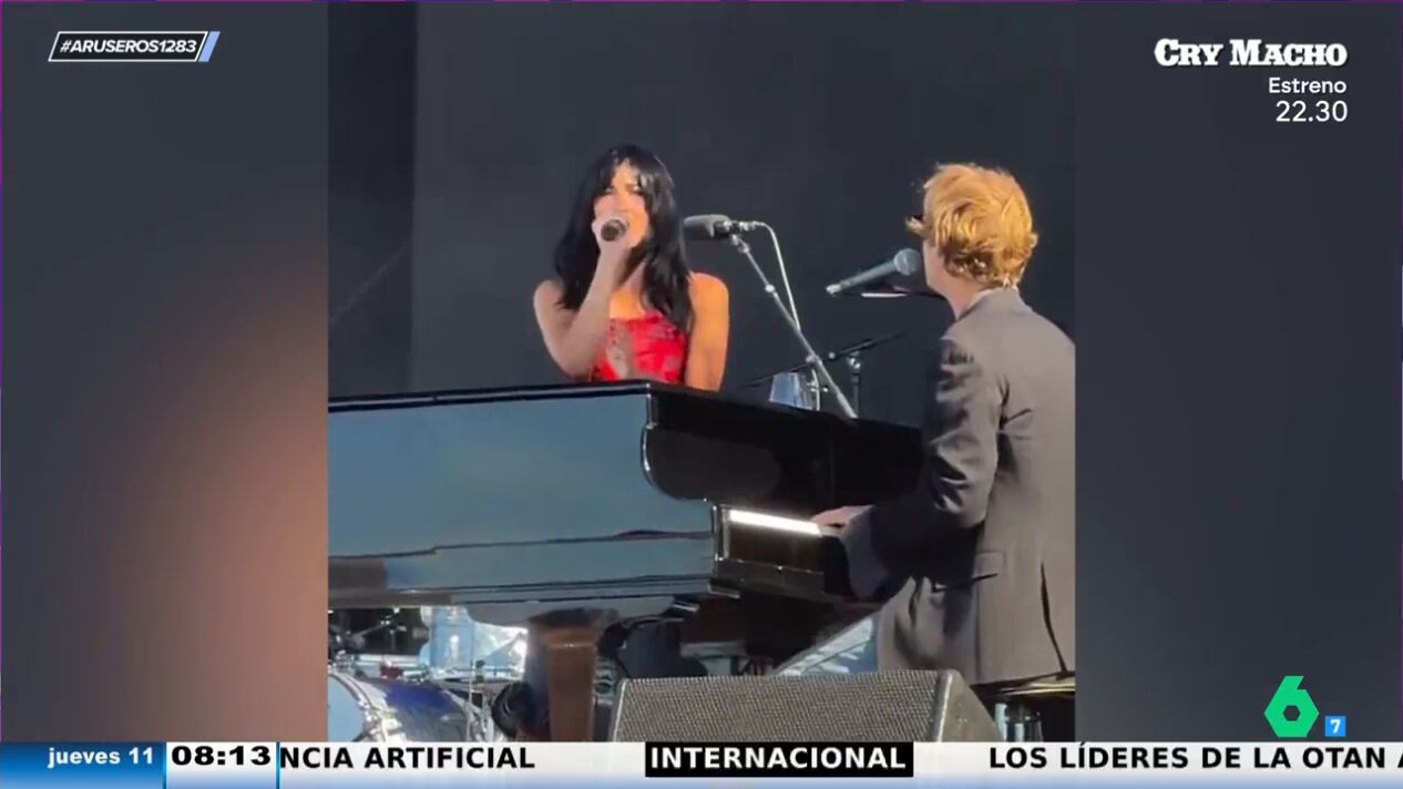 Aitana ha actuado por sorpresa en el Festival Mad Cool, en Madrid, donde la artista se subió al escenario para cantar con Tom Odell. La artista interpretó junto al británico el tema 'Black Friday'. Como se puede ver en el vídeo principal de esta noticia, Aitana llevó un look rojo palabra de honor mientras que Odell, que se encontraba tocando el piano, llevaba una americana.
