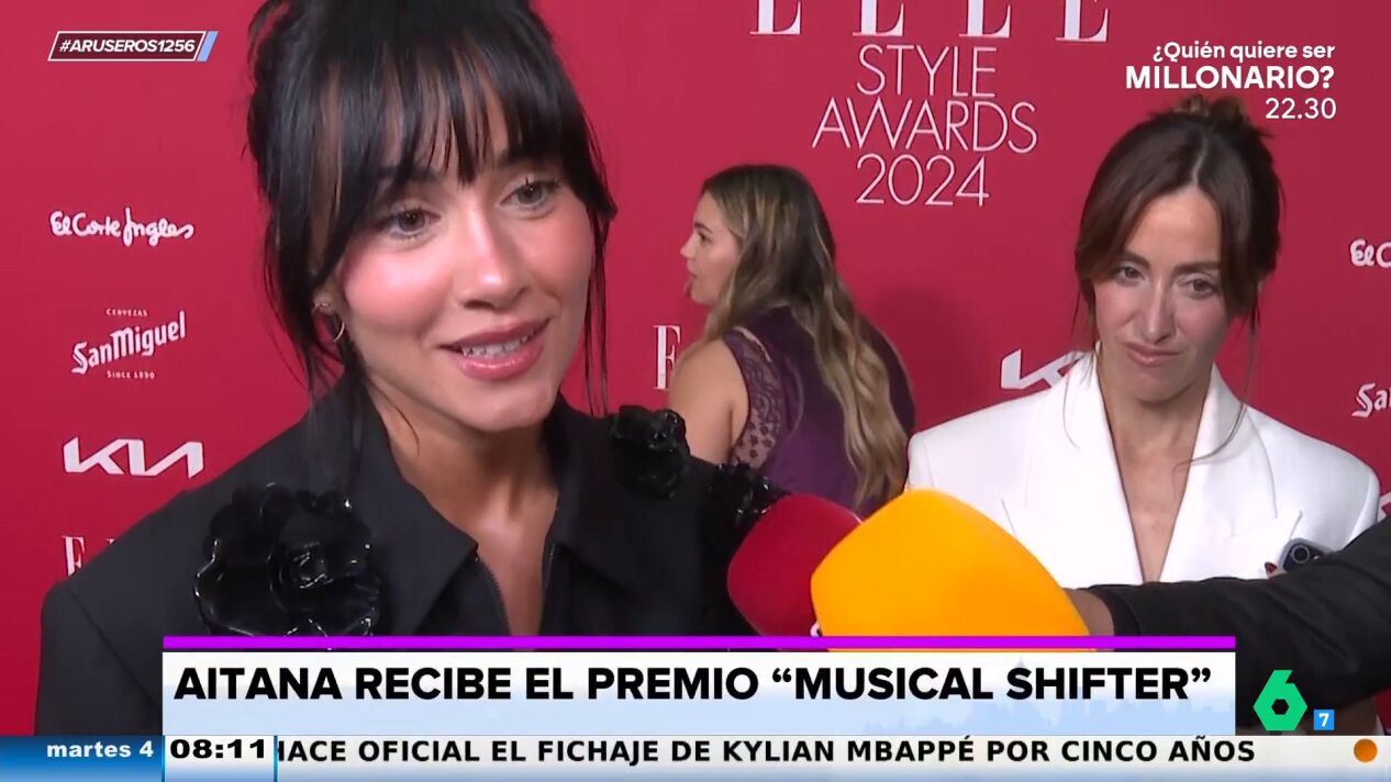 Aitanaha recibido el Premio musical en los Premios Ellede la mano de la actriz Milena Smit. La cantante ha suscitado gran interés sobre la alfombra roja, en donde se le ha preguntado por su relación con Sebastián Yatra y sus dos conciertos en el Santiago Bernabéu tras asistir al de Taylor Swift.