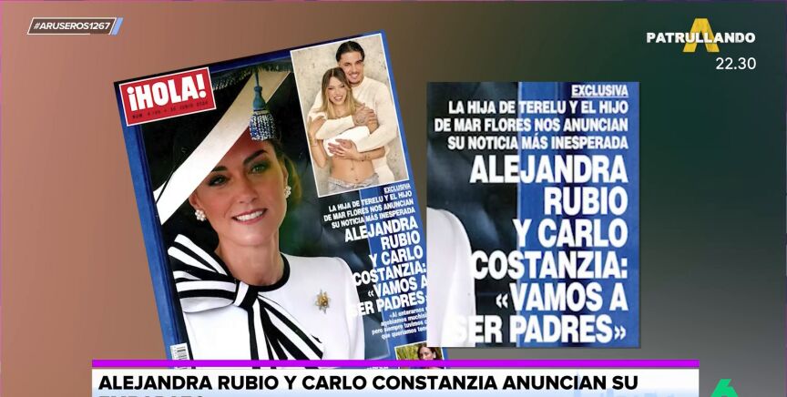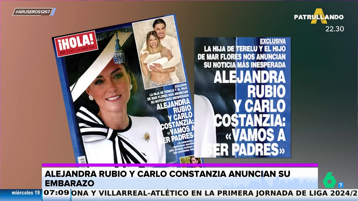 "Una de las noticias indiscutibles de la prensa del corazón es el reconocimiento del embarazo por parte de Alejandra Rubio y Carlo Costanzia", destaca Alfonso Arús en el plató de Aruser@s, donde Tatiana Arús da más detalles: "Esto sorprende mucho porque empezaron su relación el pasado mes de febrero y dos meses después se hicieron la prueba y dio positivo".