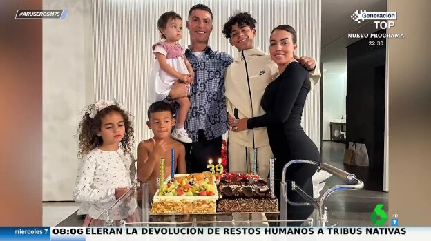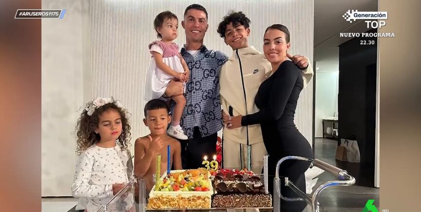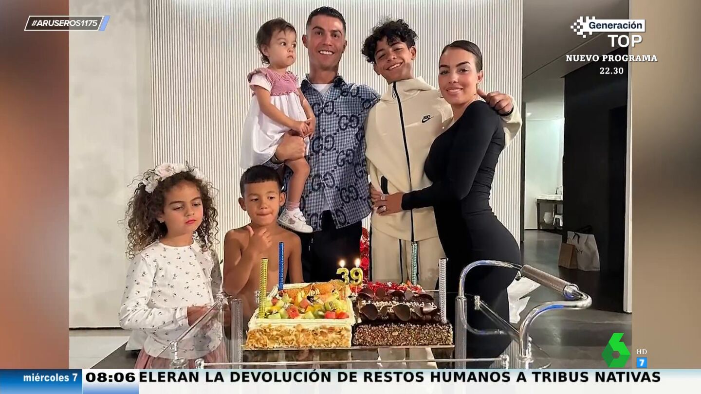 Después de que recibir las felicitaciones de su madre y sus hermanas en redes sociales, Cristiano Ronaldo por fin ha aparecido con Georgina Rodríguez y la mayoría de sus hijos por su cumpleaños. "Se pone siempre de perfil para que se le marque el culo, otra vez", alucina Alfonso Arús al ver la fotografía de Georgina Rodríguez.