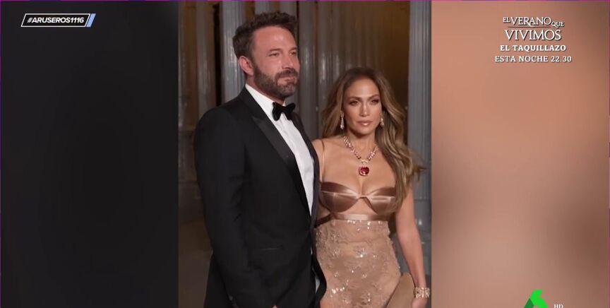 Jennifer López y Ben Affleck han acudido a la cena de gala de LACMA, el Museo Contemporáneo de Los Ángeles. Una reaparición que abre debate en el plató de Aruser@s. Y es que mientras Tatiana Arús afirma que "son una de las parejas más sólidas del panorama", Alfonso Arús y Angie Cárdenas destacan que ella tiene cara de aburrida mientras él la tiene de "empanado". "Ese es su estado normal y natural", afirma Angie Cárdenas del actor.