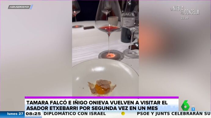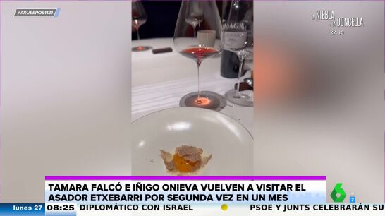 Tamara Falcó e Íñigo Onieva han vuelto a visitar el asador Etxebarri, que se está convirtiendo en un habitual para la pareja. "Es uno de los mejores restaurantes del mundo", destaca Alfonso Arús en el plató, donde Angie Cárdenas afirma que ese restaurante "crea adicción".