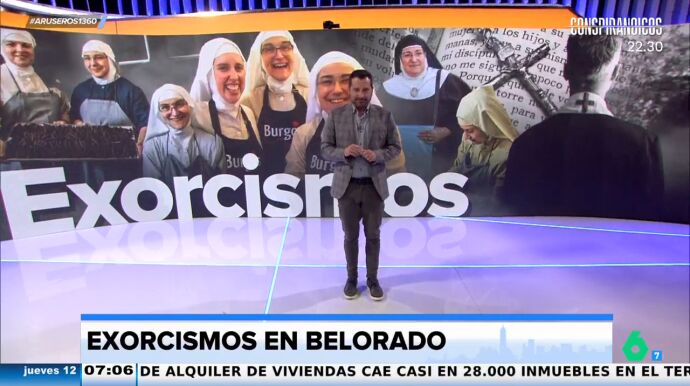 Capítulo inesperado. "Se confirma que ha habido exorcismos en Belorado", anuncia Marc Llobet en Aruser@s. Al menos, así lo asegura el jefe de prensa de las monjas de Belorado, Francisco Canals. "Deciden pedir ayuda a la Iglesia, quien, presuntamente, envía varios exorcistas, especialmente entre el año 2016 y 2020".