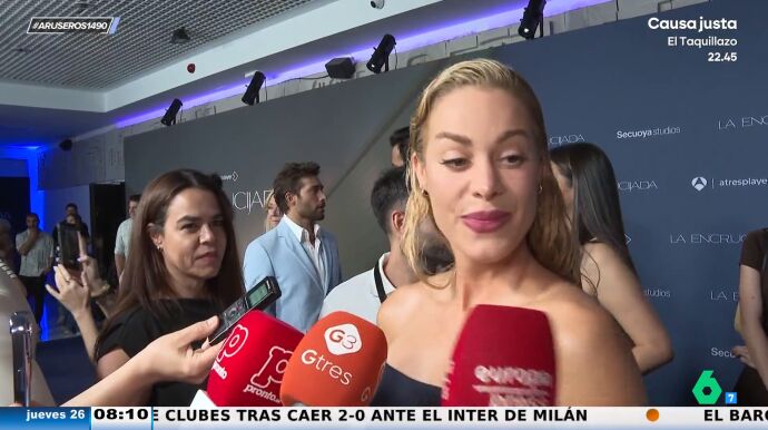 Preguntada, además, por cómo se encuentra Alejandro Sanz, Candela Márquez responde de forma algo ambigua: "Está muy bien". "¿Nada de crisis?", pregunta la reportera a la actriz, que insiste: "Les agradezco mucho, está muy feliz, muy bien".