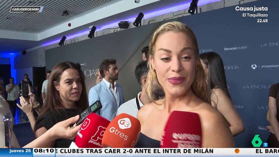 La colaboradora de Aruser@s enseña en el vídeo la reacción de la actriz cuando le han preguntado por el cantante en un evento. "Me voy a dar unas vacaciones", destaca Márquez, que afirma que necesita "un poco de tranquilidad" por lo que se irá una o dos semanas a la playa.