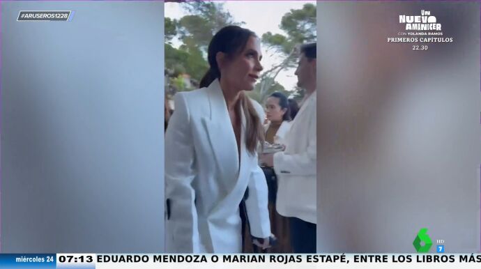 "Recordaréis que, para la coronación de Carlos III el año pasado, la reina vistió un diseño verde de Victoria Beckham", cuenta Tatiana Arús en Aruser@s. Pero no solo ha hablado de doña Letizia, sino que también ha elogiado a España. "Sí, ahora ya no huele a ajo", comenta Alfonso Arús acerca del rumor que asocia esta frase a la pareja de David Beckham.