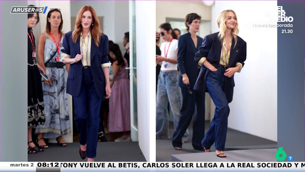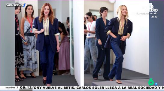 La actriz de 'Pretty Woman' o 'Novia a la fuga' ha prestado su look del festival de Venecia a su compañera de profesión, quien, como podemos ver en estas imágenes emitidas en Aruser@s, no dudó en lucirlo en el mismo evento varios días después.