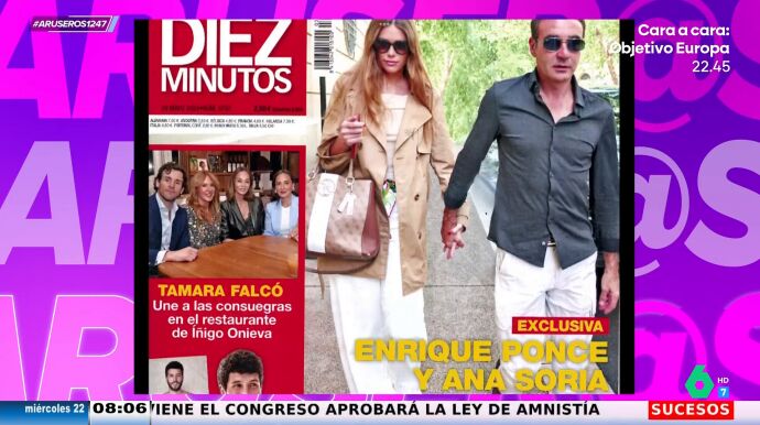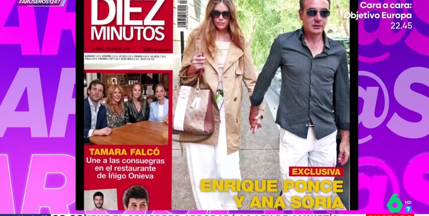 Alfonso Arús destaca la portada de la revista '10 Minutos' en la que afirma que Enrique Ponce y Ana Soria se casarán en 2025: "La gente lo hace muy largo, me recuerda a Elizabeth López". Tatiana Arús da en el plató de Aruser@s todos los detalles del evento: "Parece ser que después de tres años viviendo juntos en Almería, se darán el 'sí, quiero' en la primavera de 2025 en la propia Almería, tierra natal de la novia".