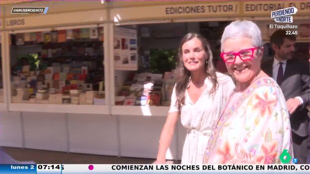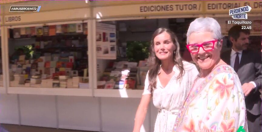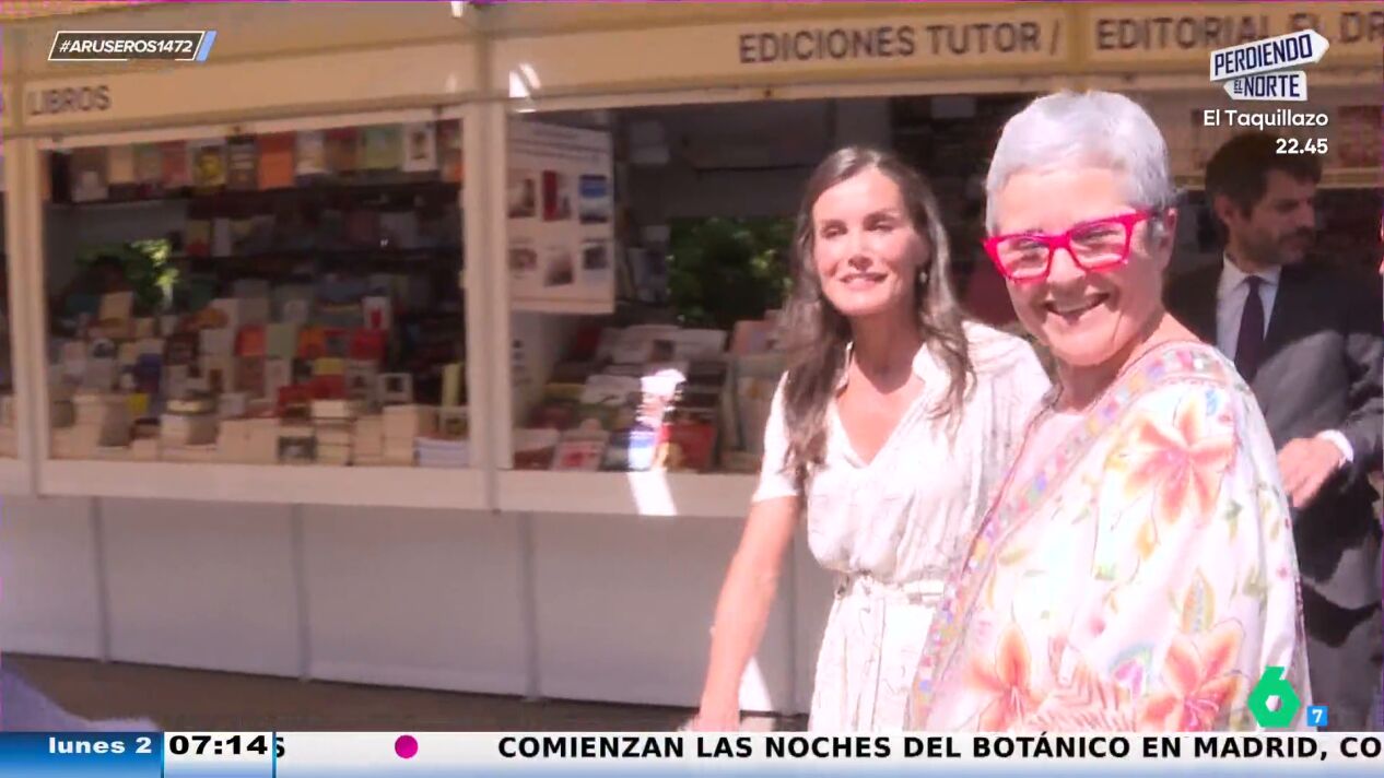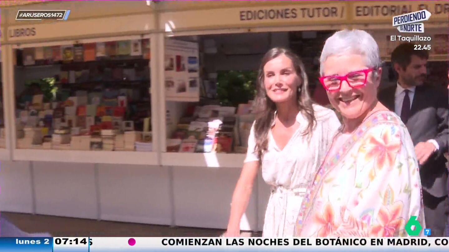 "Quienes la conocen han dicho que es indomable en este sentido, le da igual por dónde la orienten que acaba en las casetas que a ella le apetece", explica Alfonso Arús en el plató de Aruser@s, donde Angie Cárdenas destaca que se ha visto "una imagen de la reina Letizia llevándose cinco o seis libros".
