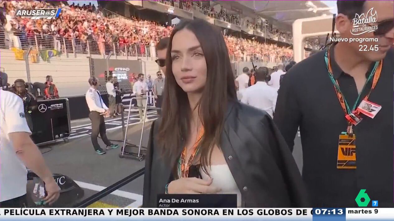 Ana de Armas deslumbra en el Gran Premio de Abu Dabi de la F1: "A Hamilton se le van los ojos"
