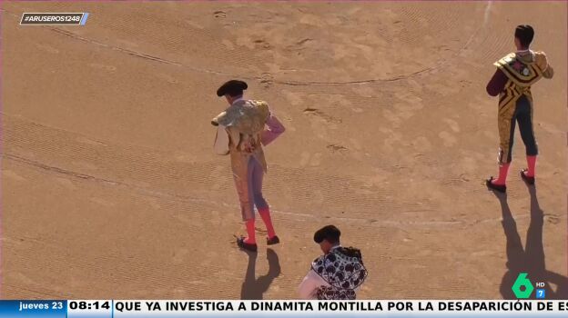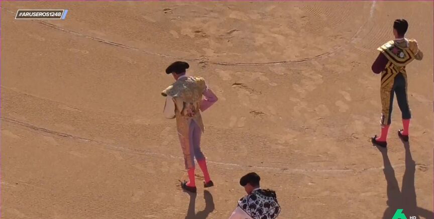 Por otro lado, el presentador de Aruser@s enseña las imágenes en las que Enrique Ponce dedica su último toro a la joven e, incluso, dibujó una 'a' en el suelo. "En su momento suscitó ciertas críticas porque era un feo a Paloma Cuevas, pero ahora ha querido volver a tener ese gesto en Francia tras regresar al toreo", explica Tatiana Arús.