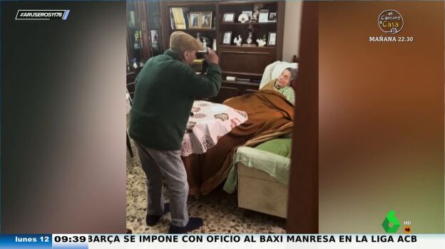 "Para entretenerla y conseguir arrancarle una sonrisa, el hombre intenta bailar su espectáculo", comenta Alfonso Arús acerca de este vídeo viral emitido en Aruser@s que, te advertimos, te va a emocionar. El anciano que lo protagoniza, baila flamenco de una forma cómica para que su mujer, sentada en una silla de ruedas y con alzhéimer, vuelva a reír como si tuvieran ambos 20 años.