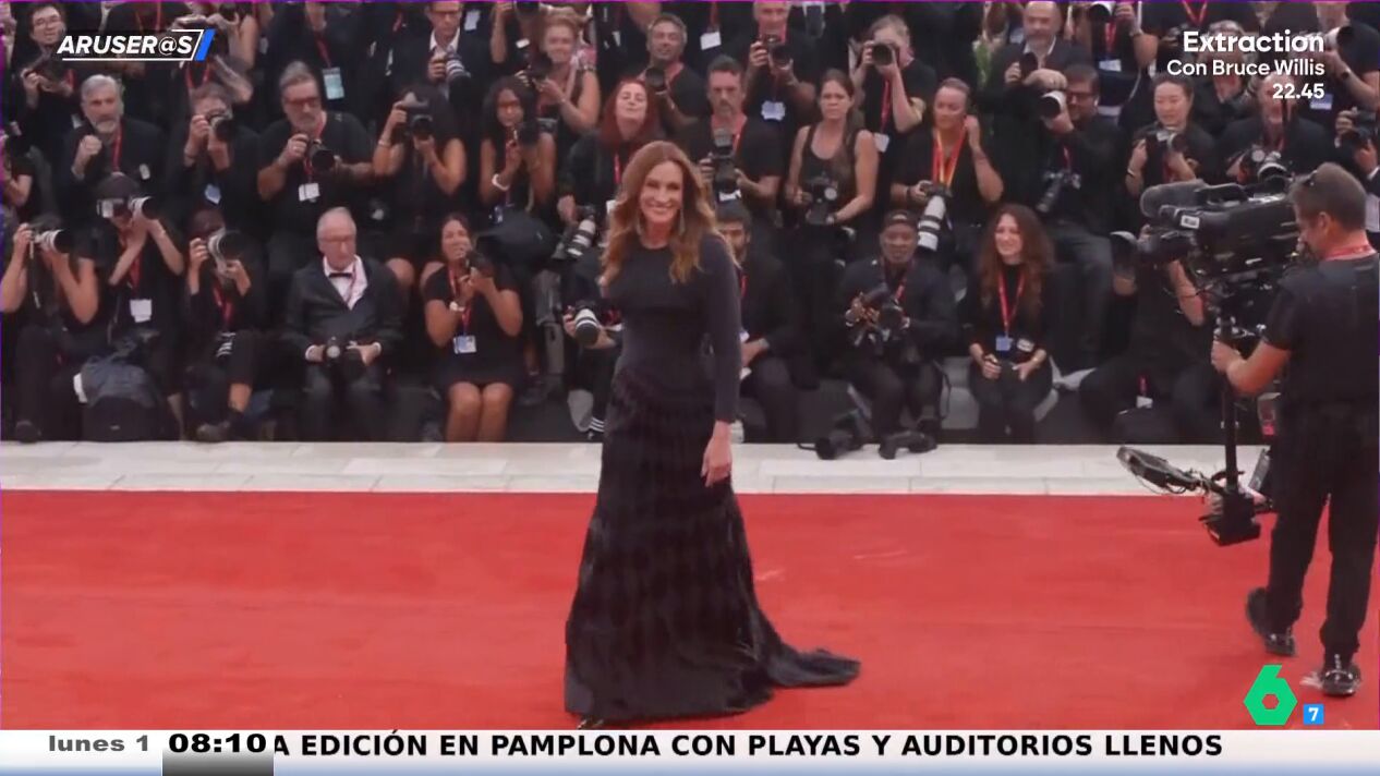 "La auténtica protagonista del festival de Venecia es Julia Roberts", asegura Alfonso Arús en Aruser@s antes de dar paso a las imágenes de su debut en la alfombra roja. "Lo hizo para presentar su película 'Caza de brujas'", explica Tatiana Arús.