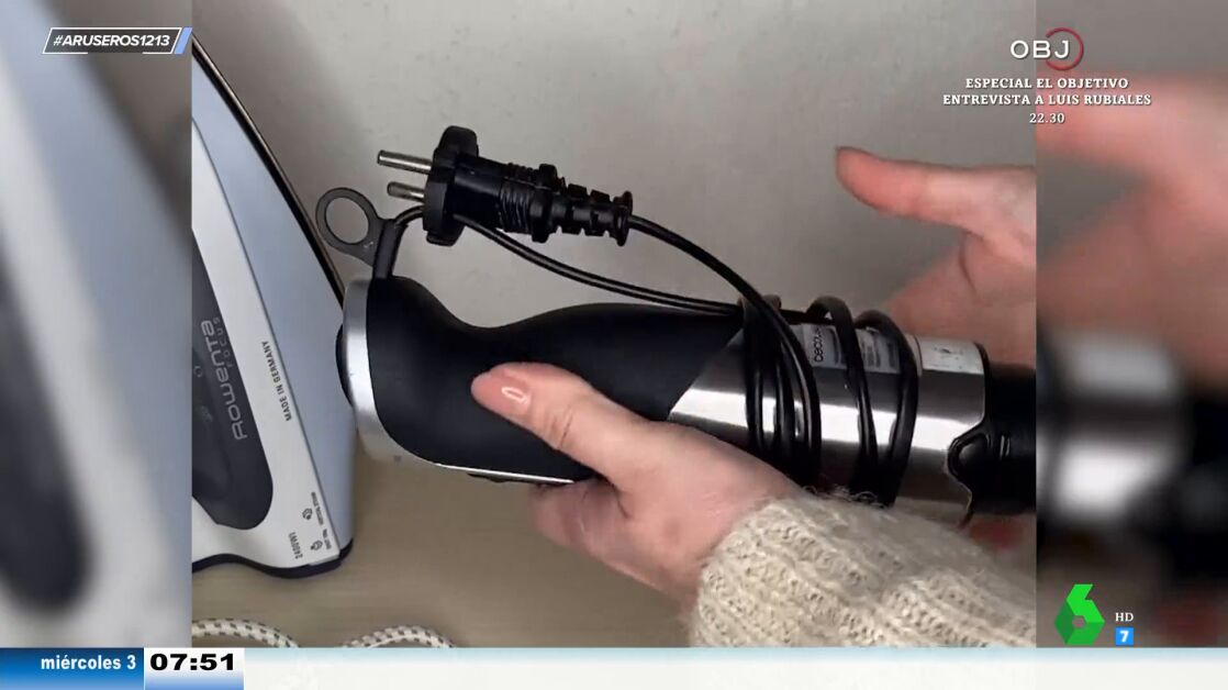 El enchufe del final de los cables lleva una ranura que sirve para encajarlo una vez se enrolla. Una vez recogido sin que quede tirante, para que no se rompa, solo queda acoplarlo ahí para que no se mueva. En plató, la mayoría reconoce que es la primera vez que escuchan esto. Aunque, Alfonso Arús recalca: "El día que los electrodomésticos dejen de llevar cable nos enteraremos, pero de alegría".