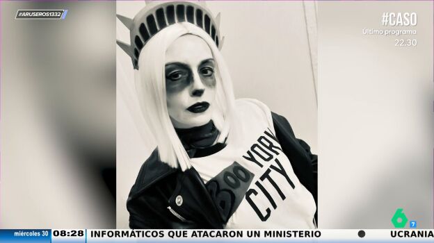 Por último, Anne Hathaway se ha transformado en una terrorífica Estatua de la Libertad. "Es una mezcla de 'La Monja' pero con el sombrero para dar pistas de que es la Estatua de la Libertad pero en versión Halloween", destaca Tatiana Arús.