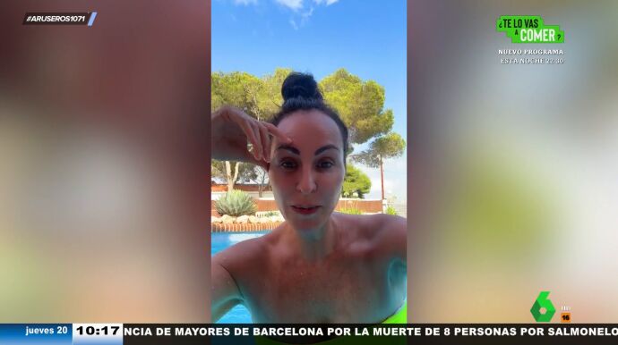 "Los comentarios de Wimbledon de que parece ser que Brad Pitt ha rejuvenecido me fascinan, porque si nosotras estamos más guapas es porque nos hemos pinchado, operado, maquillado... pero si ellos están más guapos es porque han rejuvenecido. Claro que sí, guapi", asegura rotunda mientras disfruta de un baño en una piscina, como vemos en este vídeo emitido en Aruser@s.