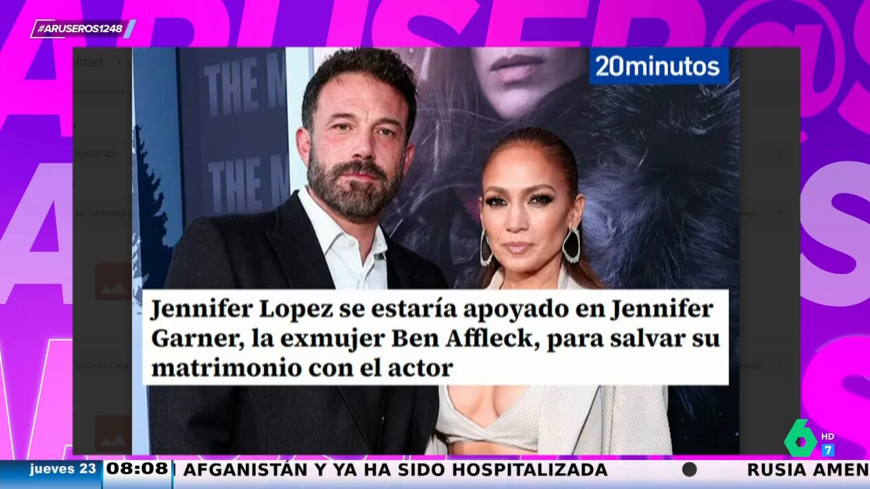 Alfonso Arús destaca que "cuando una mujer acude a la ex, dalo por perdido": "Sigo pensando que escogió a las dos del mismo nombre para no confundirse". Por su lado, Tatiana Arús afirma que ella apunta más a otra versión sobre la intervención de Jennifer Garner: "Ben Affleck estaría planteándose regresar con Jennifer Garner porque se da cuenta que la vida que a él le gusta es la tranquila, alejada de los focos". "Así recuperaría a sus hijos y volvería a su antigua vida", insiste la colaboradora, que explica que Garner y Affleck "se están viendo mucho".