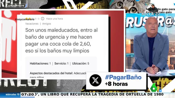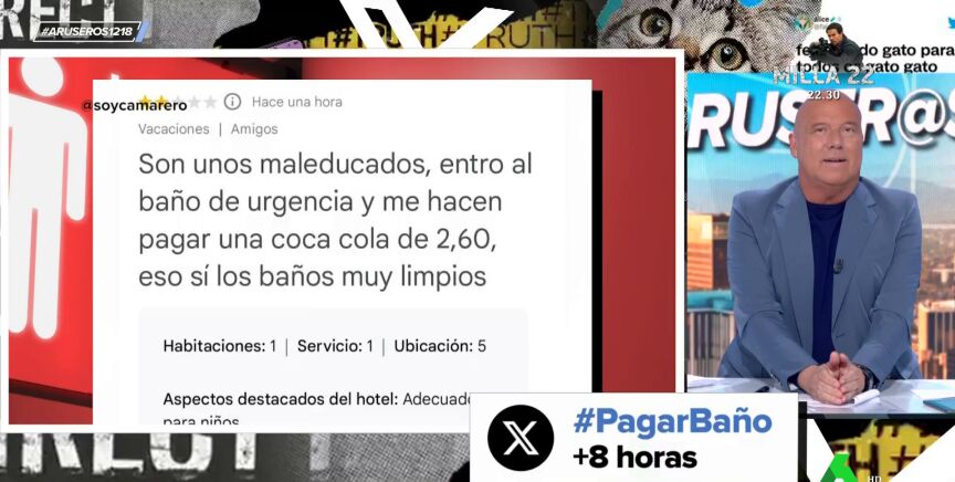 "Son unos maleducados. Entro al baño de urgencia y me hacen pagar una Coca Cola de 2'60 euros. Eso sí, los baños muy limpios". Es la reseña de la que se hace eco @soycamarero en X, la red social anteriormente conocida como Twitter, y que llega también a Aruser@s para volver a poner sobre la mesa este eterno debate.