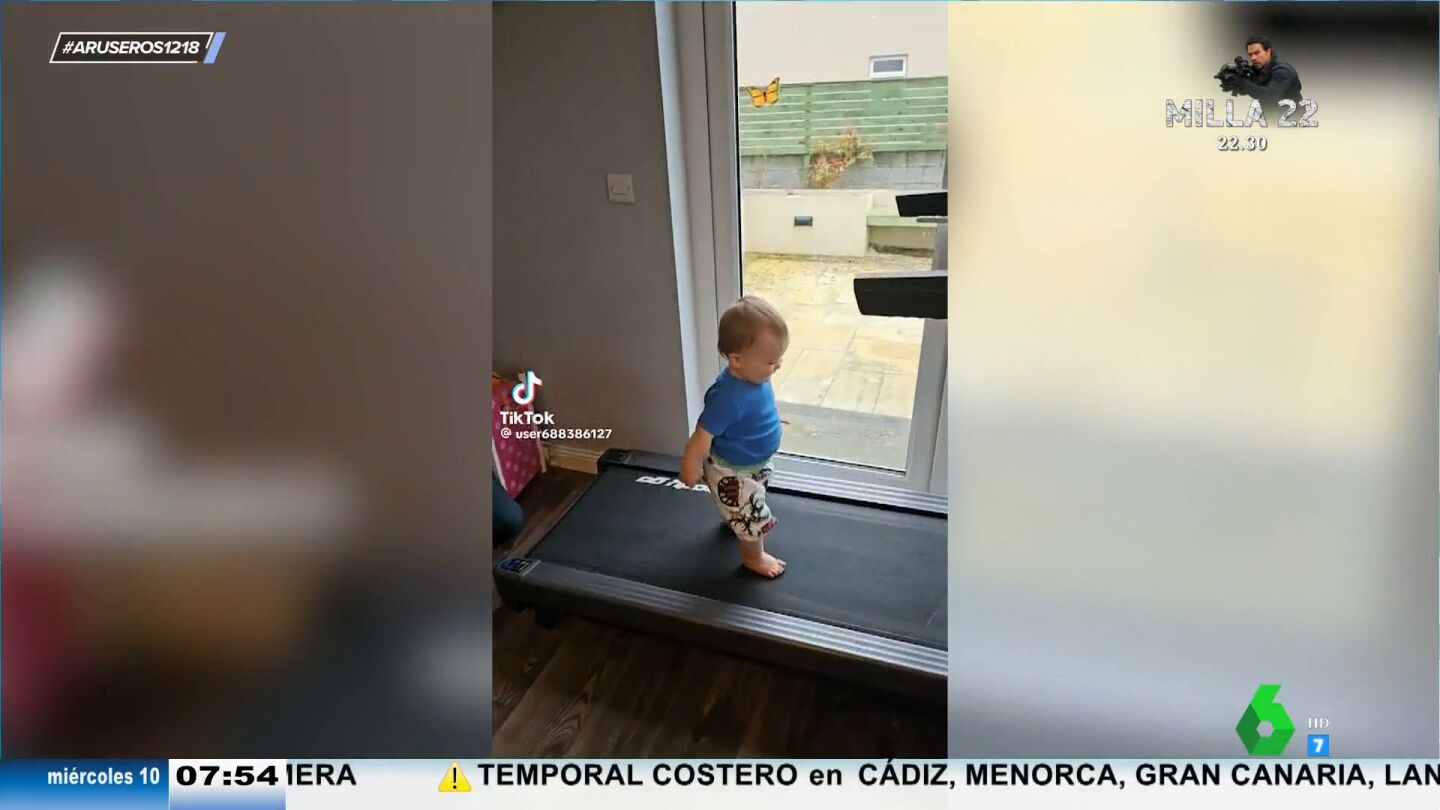 ¿Tienes una cinta andadora en casa que ya casi no usas y un bebé aburrido que no deja de llorar? Quizá lo que nos enseña este vídeo viral emitido en Aruser@s pueda llegar a ser la solución a todos tus problemas. En él, somos testigos del momento en el que un niño muy pequeñito descubre que la cinta de correr vale para mucho más de lo que él imaginaba.