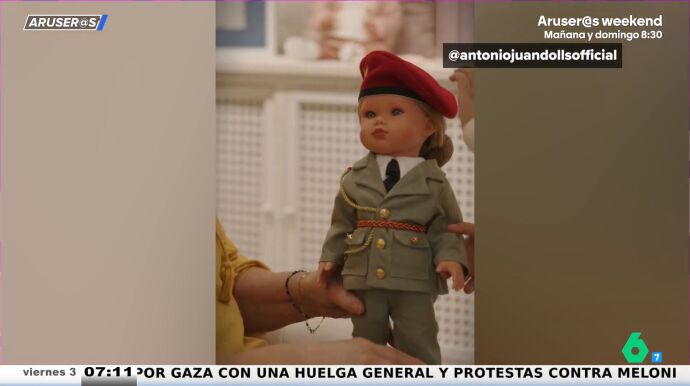 "Cuando tienes una muñeca es posible que acabes protagonizando vídeos virales", advierte Alfonso Arús sobre lo mal que trata la gente, a veces, a las muñecas. Por su parte, Alba Gutiérrez reflexiona: "Si la barbie peluquera lleva sus complementos como el secador y el peine, ¿la de Leonor también llevará sus accesorios de militar?".