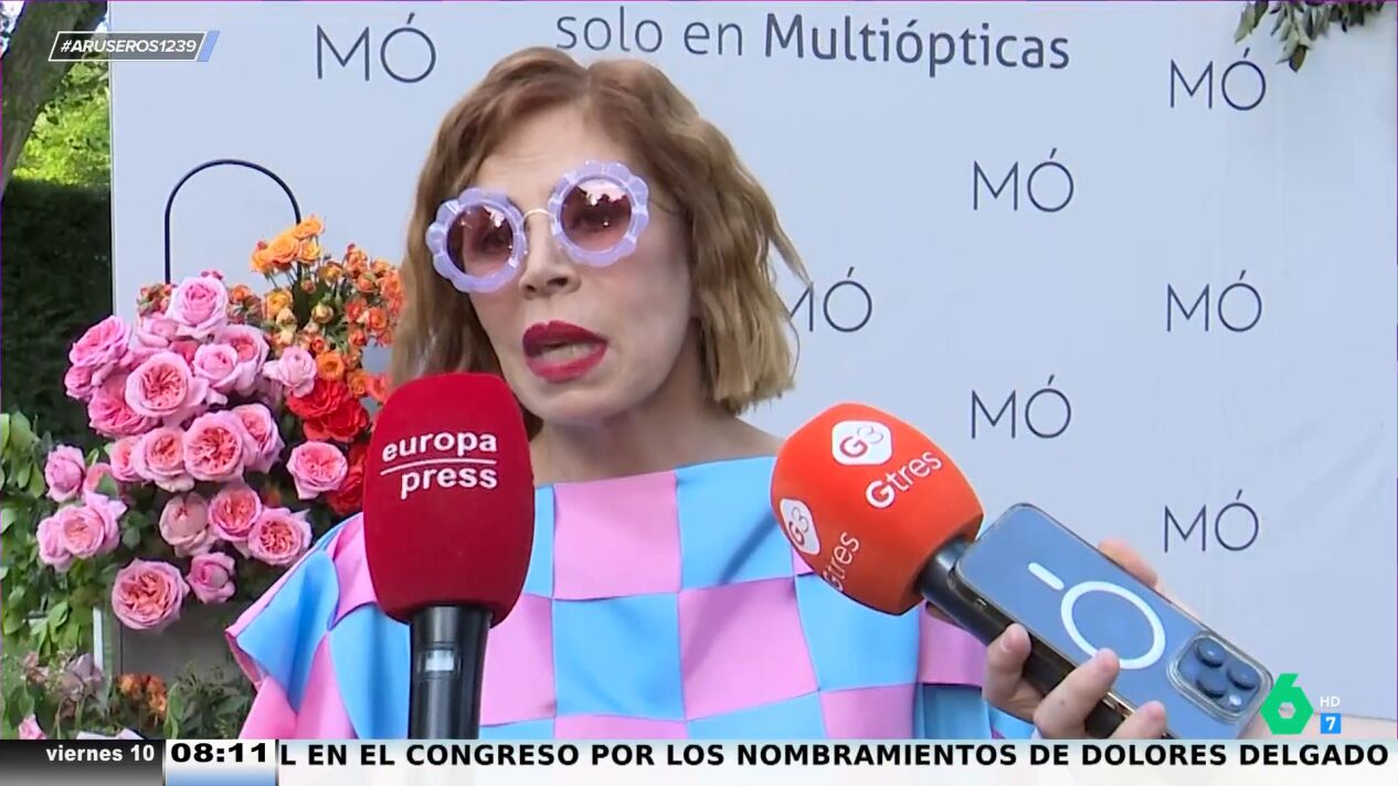 "Pues nada, fenomenal, muchas gracias", destaca Ágatha Ruiz de la Prada tras enterarse de que Carmen Lomana la ha felicitado por el nacimiento de su nieta: "Siempre se alegra una de que la feliciten".