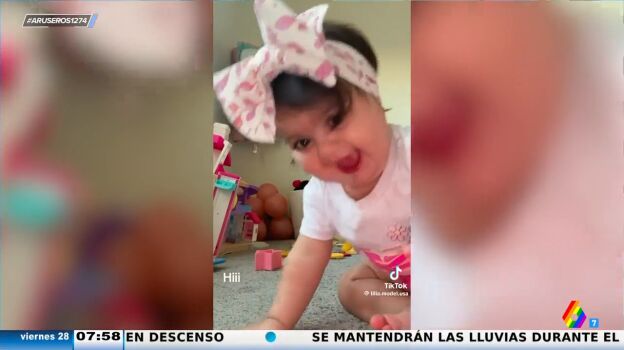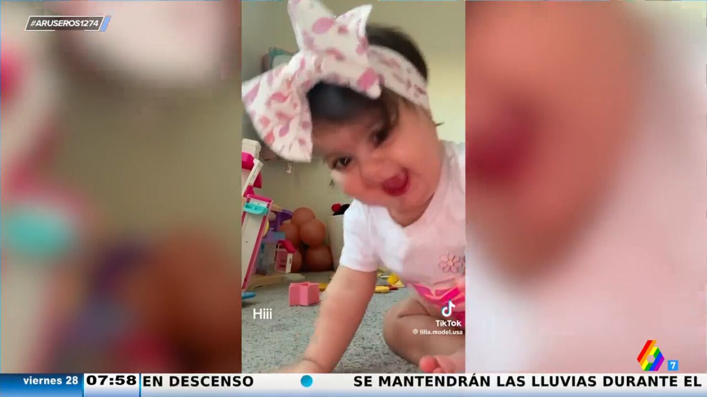 Alfonso Arús trae al plató de Aruser@s el vídeo viral de una niña que saluda cada vez que pasa por delante del móvil que la está grabando. La usuaria de TikTok' @lilia.model.usa' comparte la automática reacción de su bebé que no para de saludar cuando ve que la cámara está grabando.