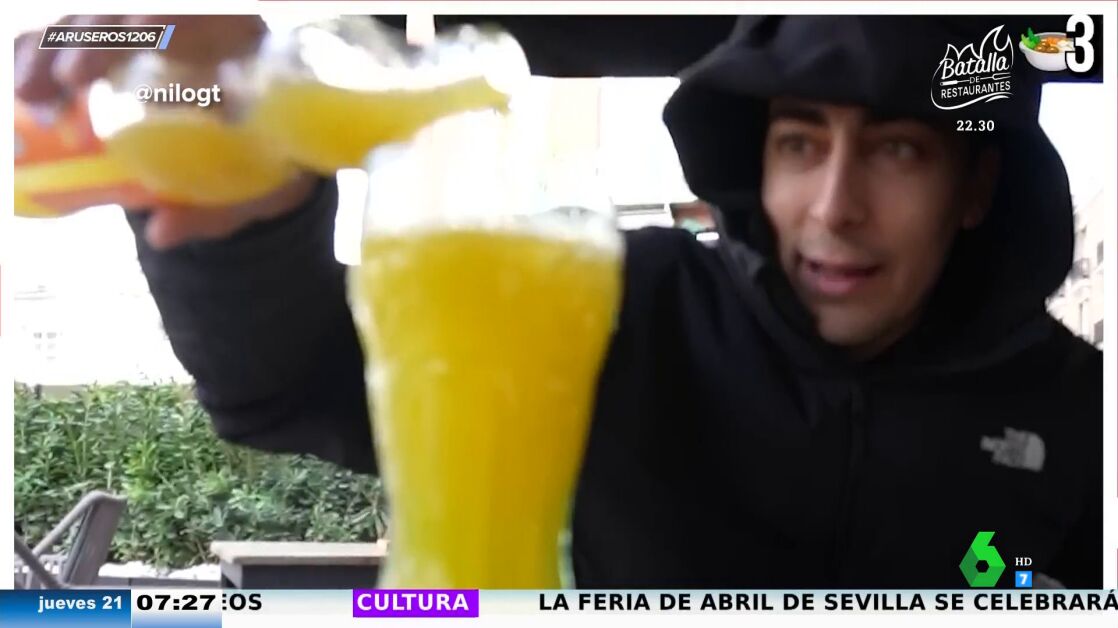 Así reacciona el youtuber Nil Ojeda al comer en los peores restaurantes de Madrid: "Mirad el culo de la Fanta lleno de cosas"