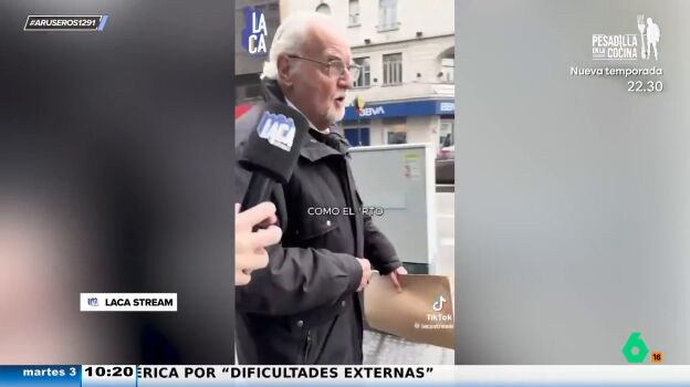 Pero esta no es la respuesta más surrealista que se encuentra el reportero. Y es que un hombre contesta de golpe "todo mal". "¿Cómo viene su día del 1 al 10?", pregunta el joven reportero al señor, que insiste: "Como el orto". "Me tiré un pedo y me cagué", confiesa el señor ante la estupefacción del joven.