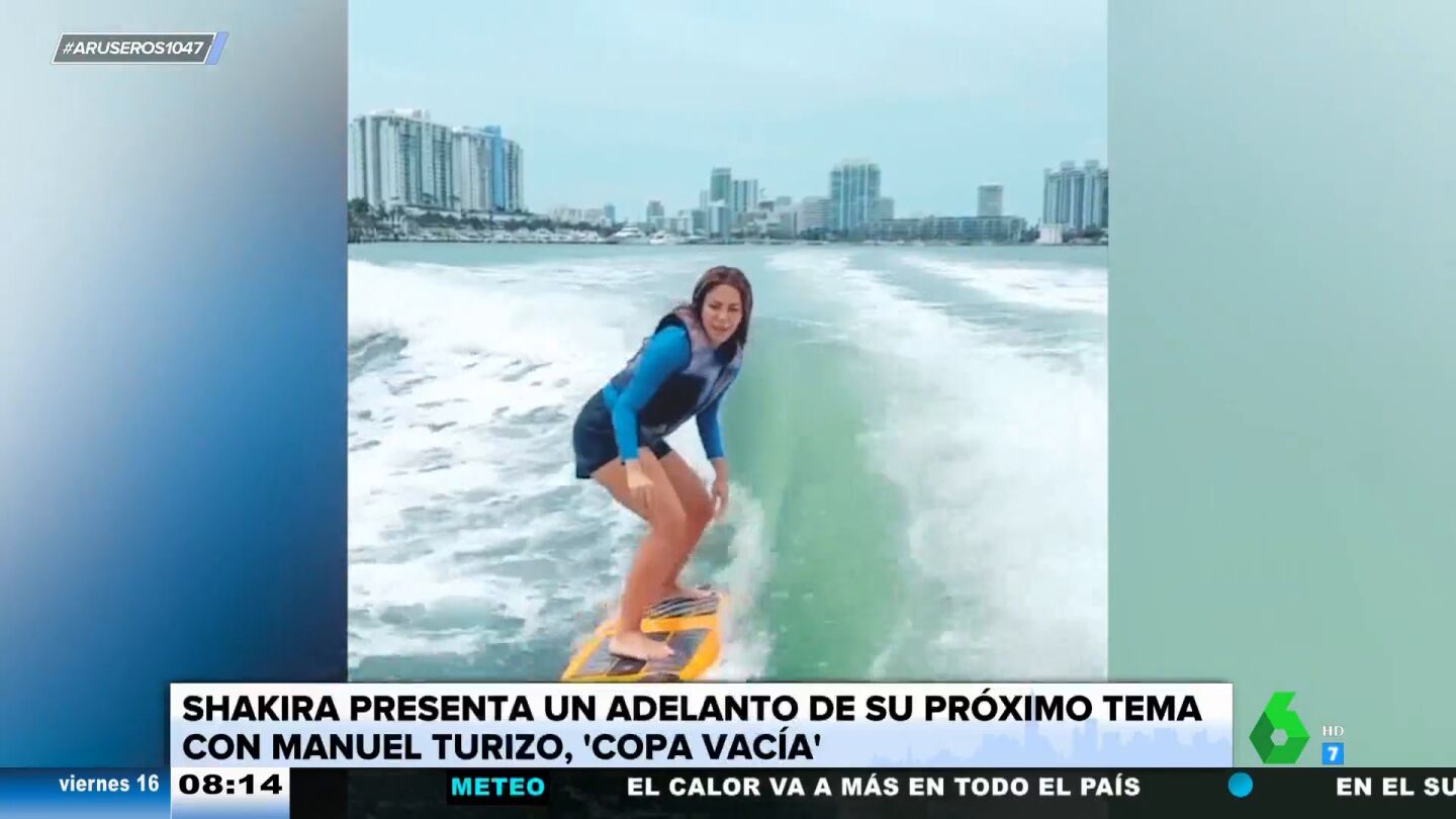 Tatiana Arús muestra en el plató de Aruser@s las nuevas imágenes que ha compartido Shakirasurfeando y no solo eso, la artista colombiana lo ha hecho adjuntando una canción. Se trata de un nuevo adelanto de la nueva canción que la colombiana sacará con Manuel Turizo: 'Copa vacía'.