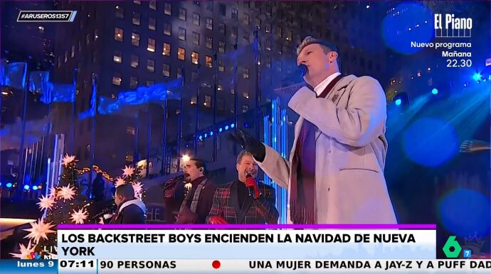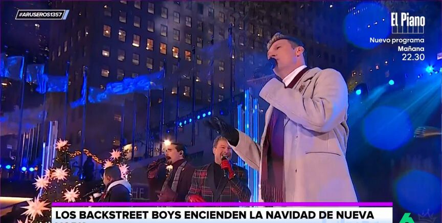 "Ya será por el frío, pero es que no tiene ninguna arruga en la frente", ironiza Alfonso Arús al ver la actuación de los Backstreet Boys en el encendido de la Navidad en Nueva York.