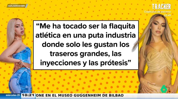 Ella también sufre comentarios despectivos por su cuerpo y no está dispuesta a soportarlos: "Me ha tocado ser la flaquita atlética en una puta industriadonde solo gustan los culos grandes, las inyecciones y las prótesis".