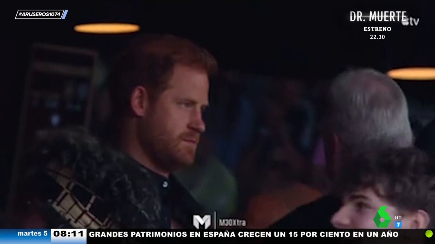 Alfonso Arús enseña en el plató de Aruser@s las últimas imágenes del príncipe Harry. El hijo menor del rey Carlos ha acudido a ver un partido del Inter de Miami, equipo de David Beckham en el que juegan futbolistas como Busquets o Messi. El fichaje de este último ha convertido al estadio del equipo americano en una pasarela a la que acuden famosos internacionales de la talla ya no solo del príncipe sino también de Selena Gómez.