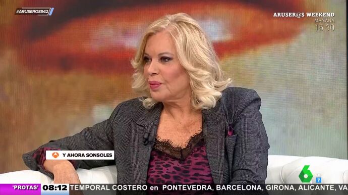 "Yo sabía claramente que era una relación que no podía tener futuro y lo tenía que haber sabido todo el mundo que ha estado con él", reconoce Bárbara Rey ante Sonsoles Ónega en el programa de Antena 3 'Ahora Sonsoles'.