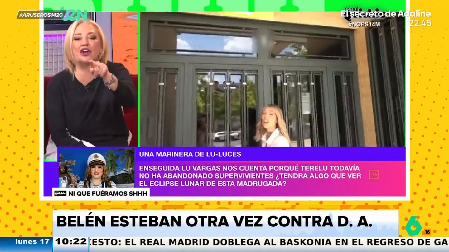 Belén Esteban vuelve a ocupar un puesto de honor en los 'zascas' de Aruser@s, esta vez por su nuevo 'dardo' contra D.A. "Que hable de su vida, al final me vas a hacer hablar", le advierte en 'Ni que fuéramos Shhh...'.