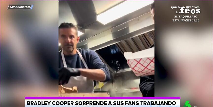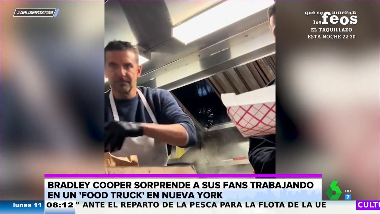 Bradley Cooper ha sorprendido al ponerse a trabajar en una food truck en pleno Nueva York por motivos benéficos. "Se ha puesto el delantal y se ha puesto a hacer bocadillos en Nueva York", destaca Tatiana Arús, que explica en el plató de Aruser@s que hasta allí acudieron rostros conocidos como las modelos Irina Shayk y Gigi Hadid.