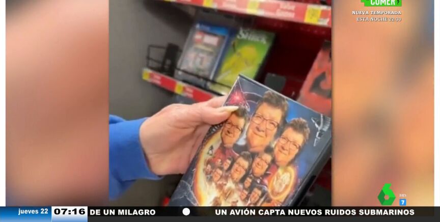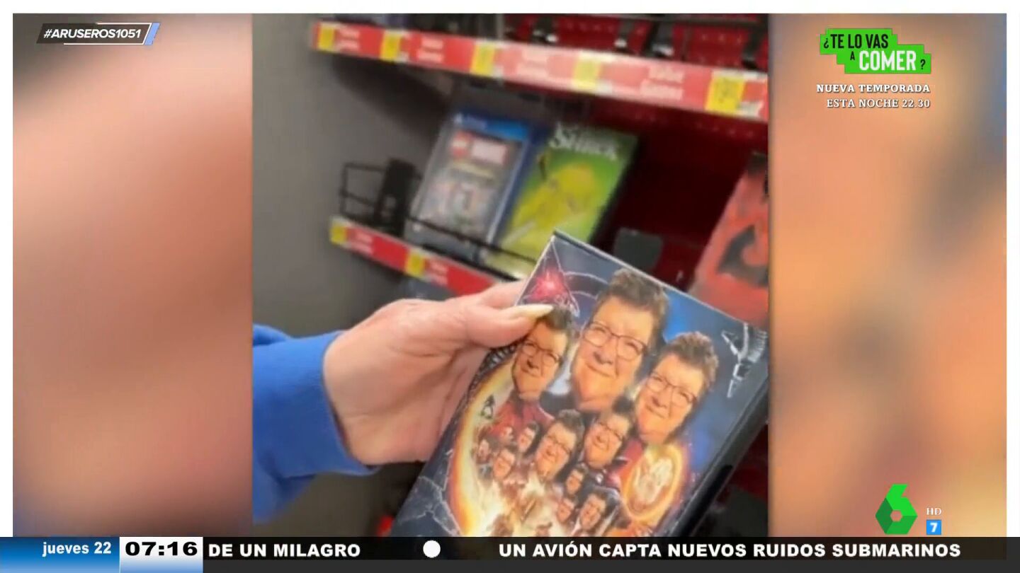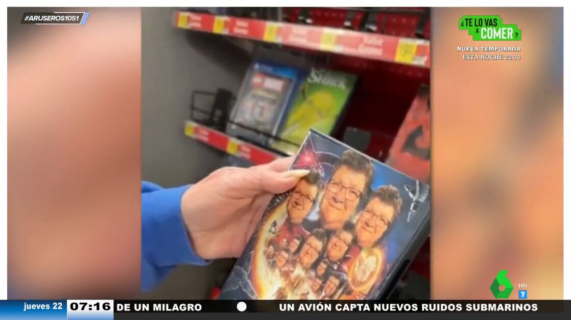 Imagina ir paseando por el supermercado y descubrir que eres el protagonista de las pelis y videojuegos que allí se venden. Esto es lo que le pasa a la abuela que protagoniza este vídeo viral emitido en Aruser@s, que descubre cuando va caminando por los pasillos que su cara aparece en todas las carátulas.