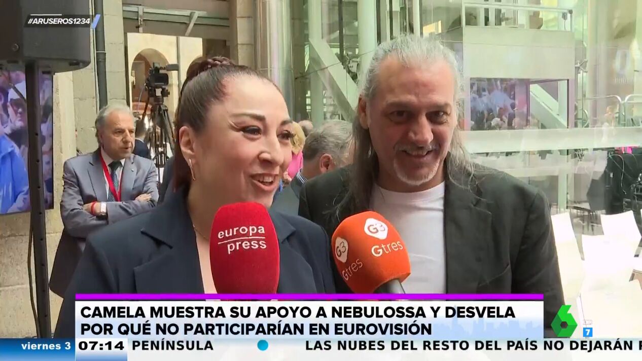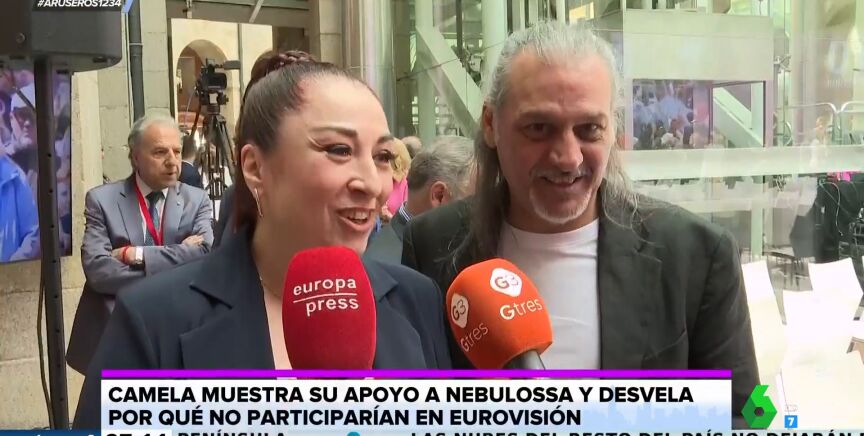 Por otro lado, tras recoger el premio, Camela habla con la prensa de Nebulossa y 'Zorra', la canción con la que representarán a España en Eurovisión. "Estoy de acuerdo y me encanta la canción, no tengo ningún prejuicio con la canción", destaca Dioni, que insiste en que le encanta la canción y ellos: "Sé que hay algunos compañeros que pueden estar molestos, pero a mí me encantan". Preguntados sobre si se presentarían al Festival para representar a España, ambos lo niegan. "Es una responsabilidad muy grande y creo que no lo podría hacer bien por los nervios", afirma Ángeles mientras que Dioni destaca que no se ven ahí.