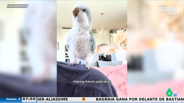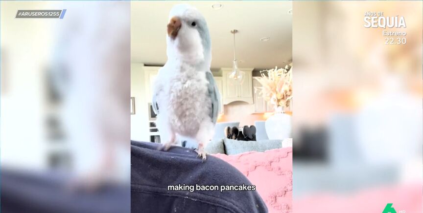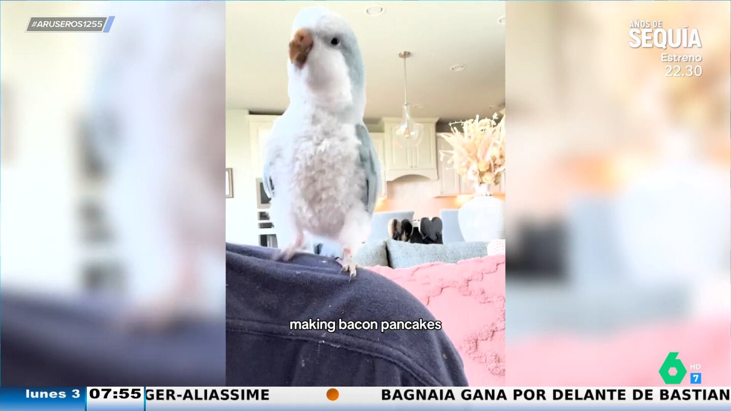 Canta y baila cuando se entera que tiene tortitas para desayunar: así es la graciosa coreografía de un loro