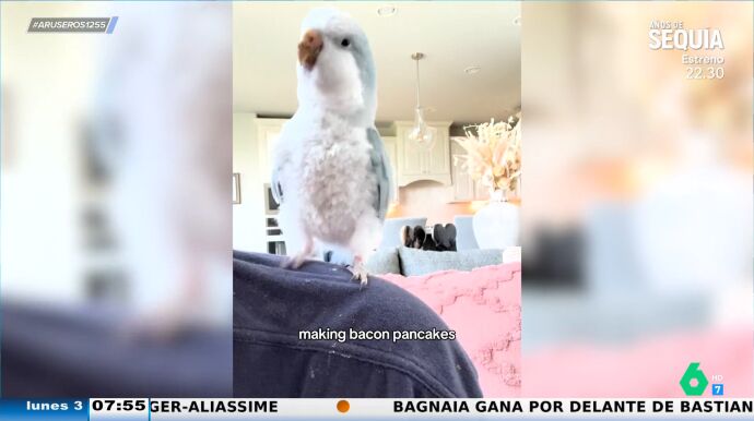 "Sabe el ritmo, sabe la entonación, lo sabe todo", destaca Alfonso Arús del vídeo, mientras que Angie Cárdenas destaca lo currado que está el baile del ave. Por su parte, Hans comenta que el desayuno que va a comer el loro se parece a los que lleva a plató Marc Redondo, una comida "muy ligerita".