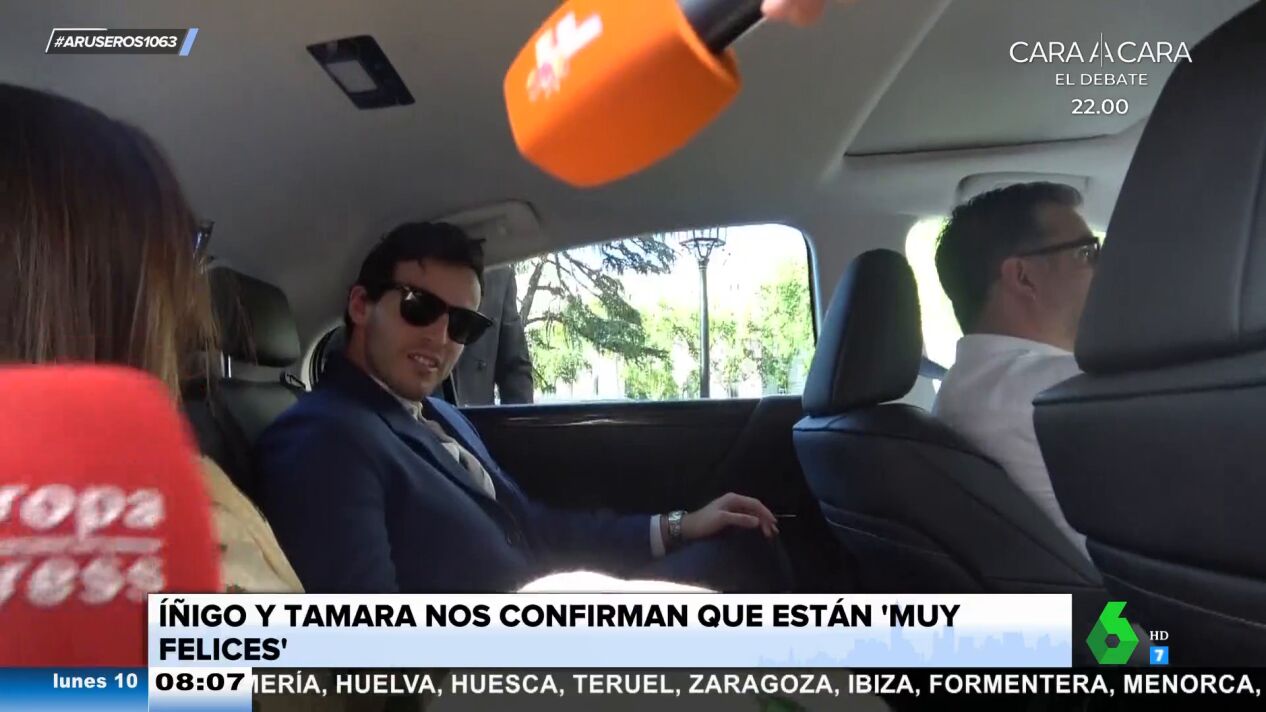 "La imagen de la felicidad yo creo que la encontramos cuando Íñigo Onieva y Tamara Falcó llegan la hotel después de la boda", ironiza Alfonso Arús, que muestra el momento en el vídeo principal de esta noticia, donde los colaboradores alucinan con la cara del novio. Y es que, además, Angie Cárdenas destaca cómo ni siquiera se esperan para entre en el hotel juntos: "Ella coge la directa y entra".