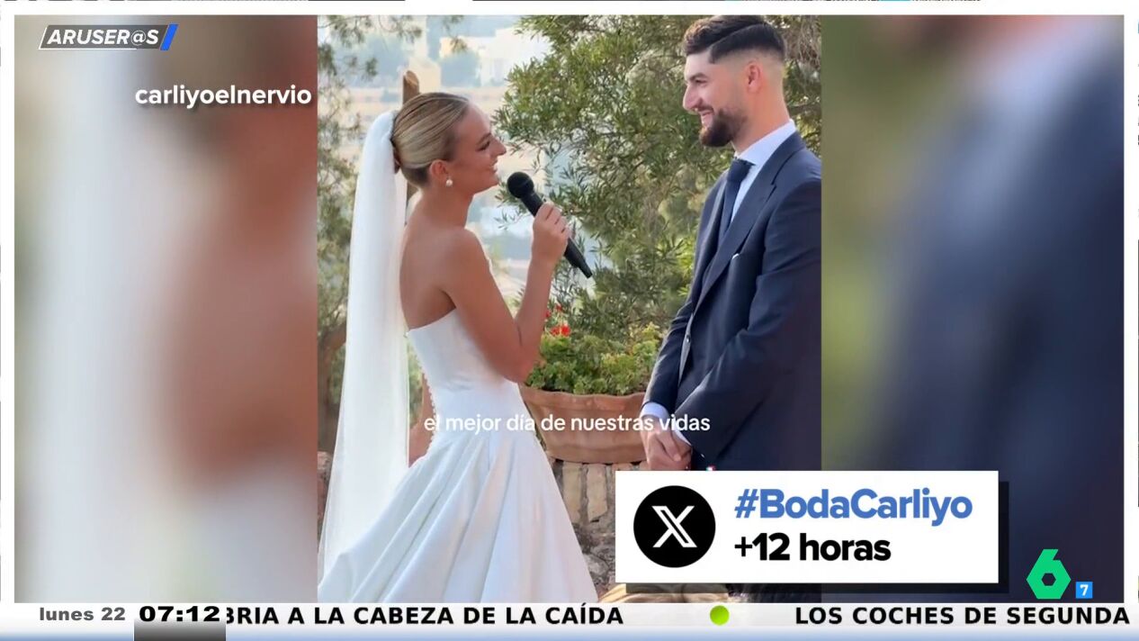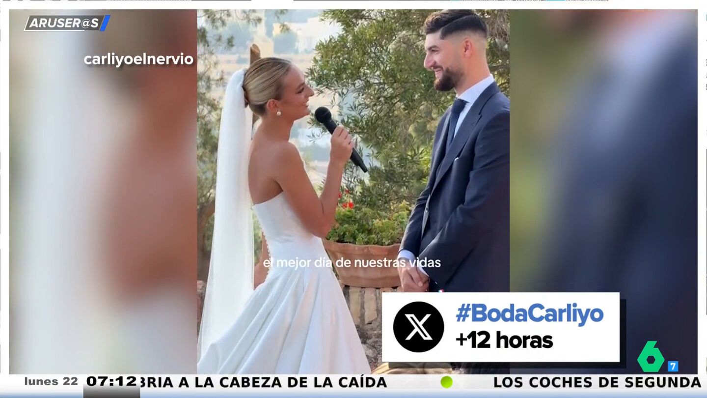 Carliyo, uno de los tiktokers favoritos de Aruser@s, se ha casado con su novia, la influencer Natalia Palacios. "Por fin se han casado y hemos zanjado la duda", destaca Hans Arús, que recuerda cómo el joven malagueño había confesado a sus seguidores su temor a no llorar en este día tan especial.